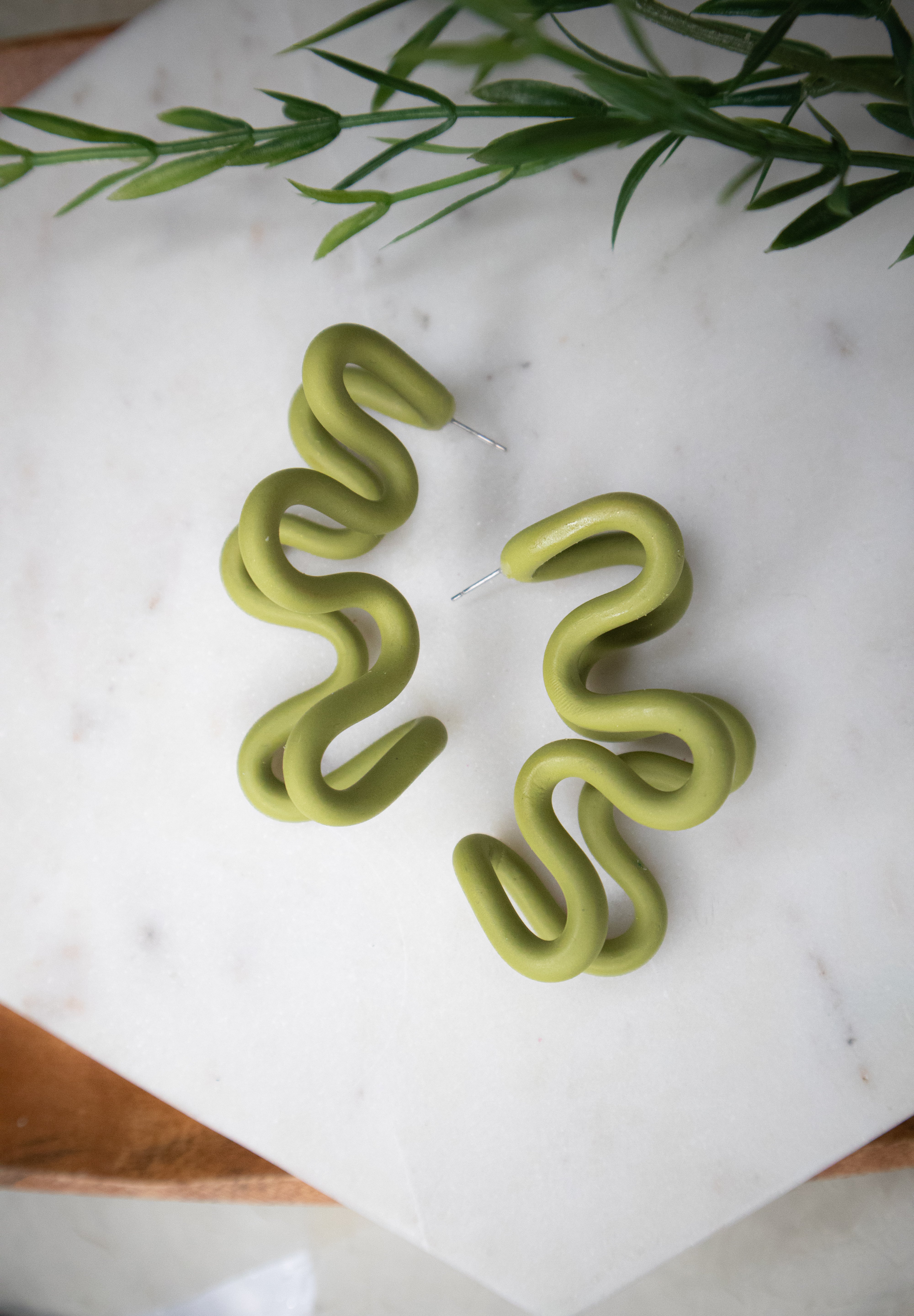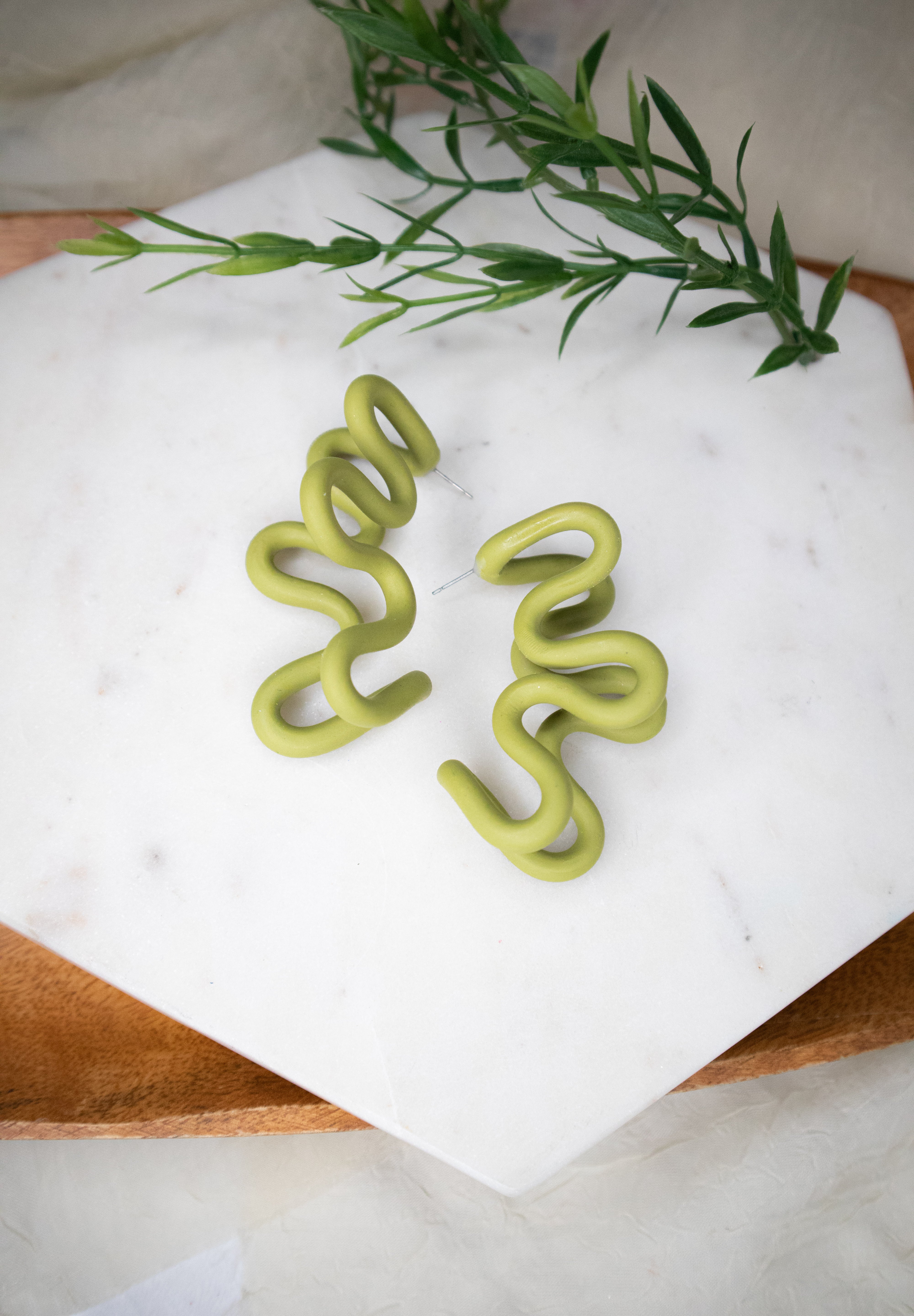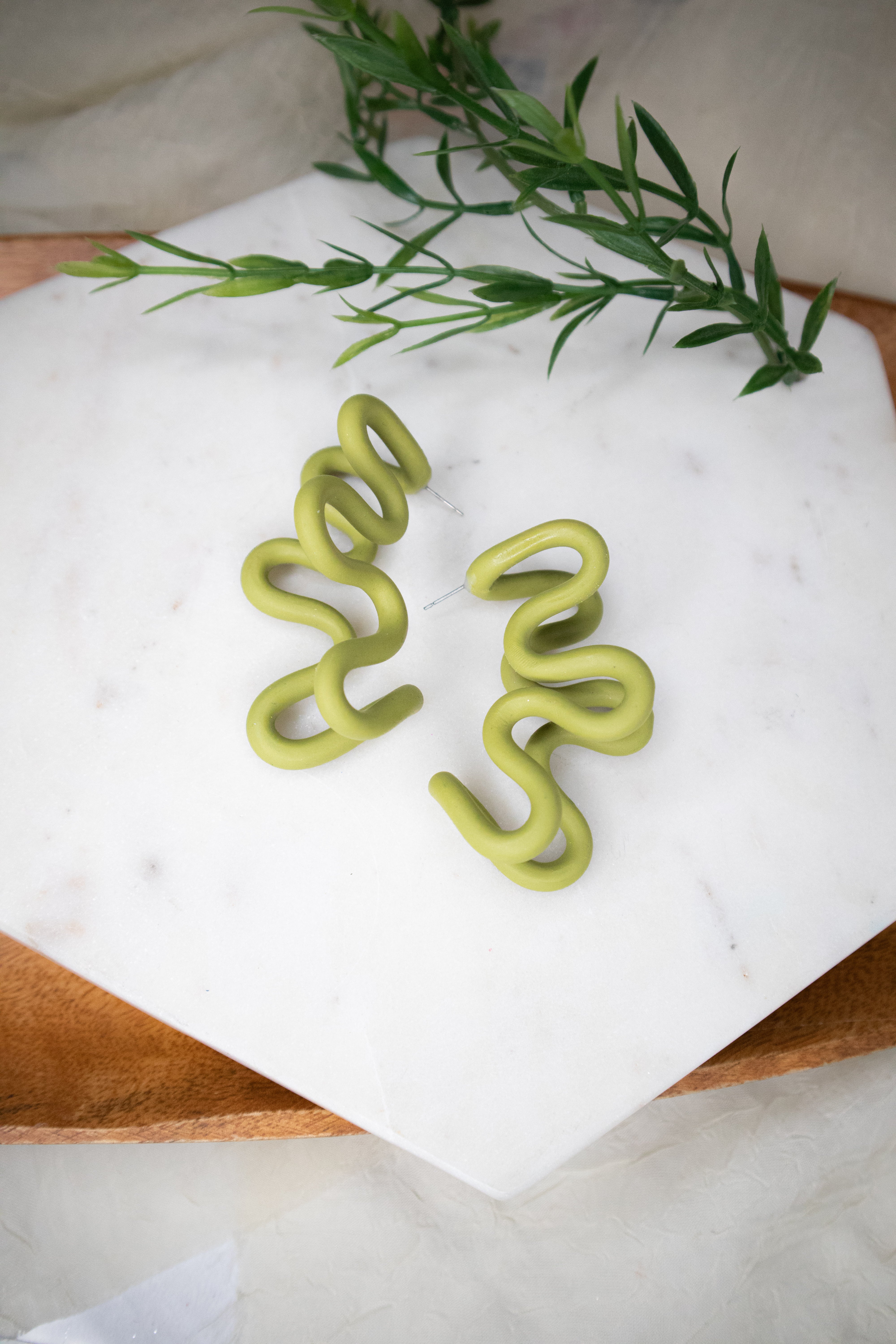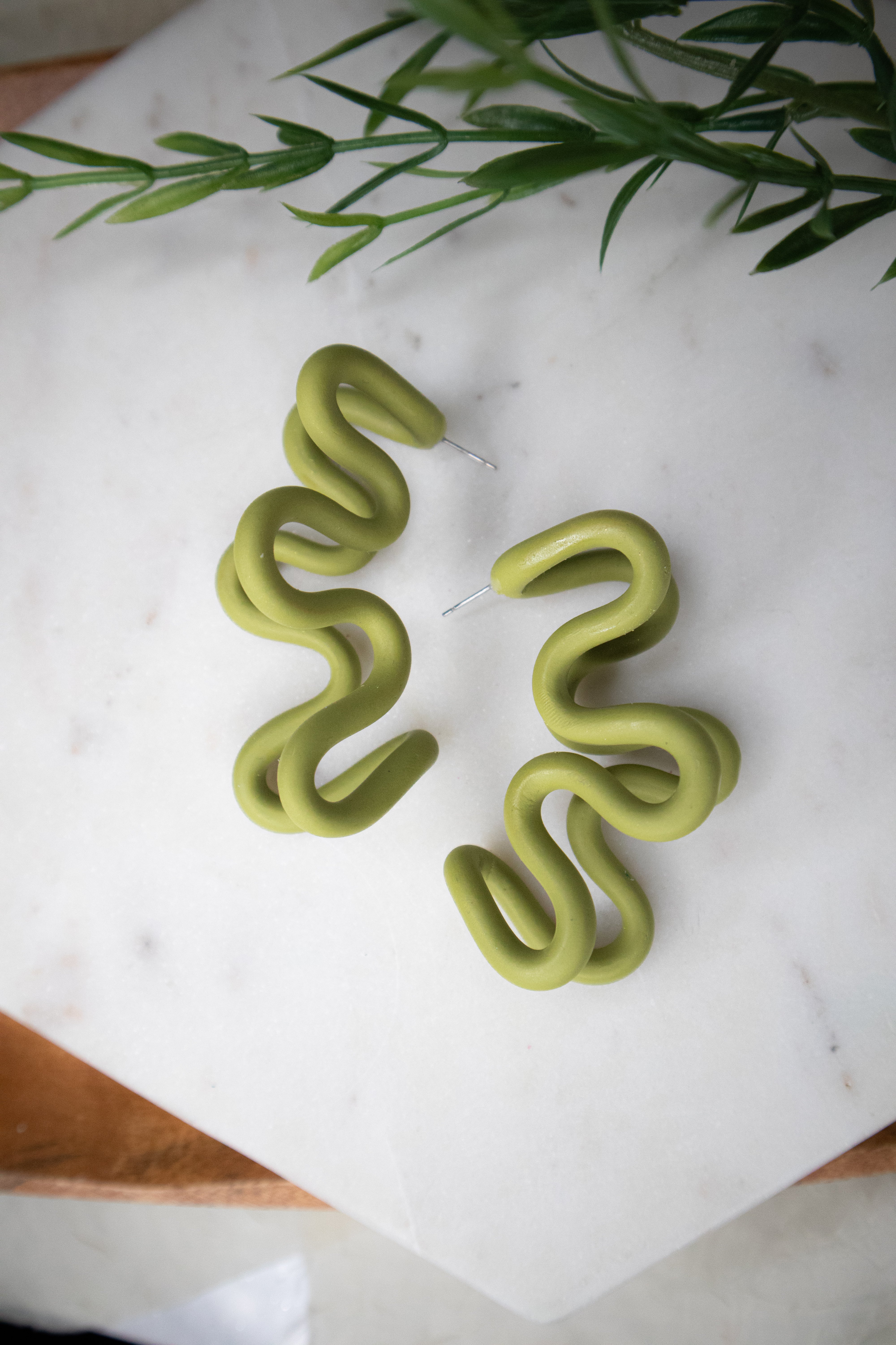 Each pair is hand-formed from polymer clay and finished with hypoallergenic stainless steel posts for comfortable, all-day wear. A lush and juicy evergreen, vibrant plant life. Olive Green is refreshing, grounded, and playful. Perfect for statement earring lovers who lean earthy or eclectic.