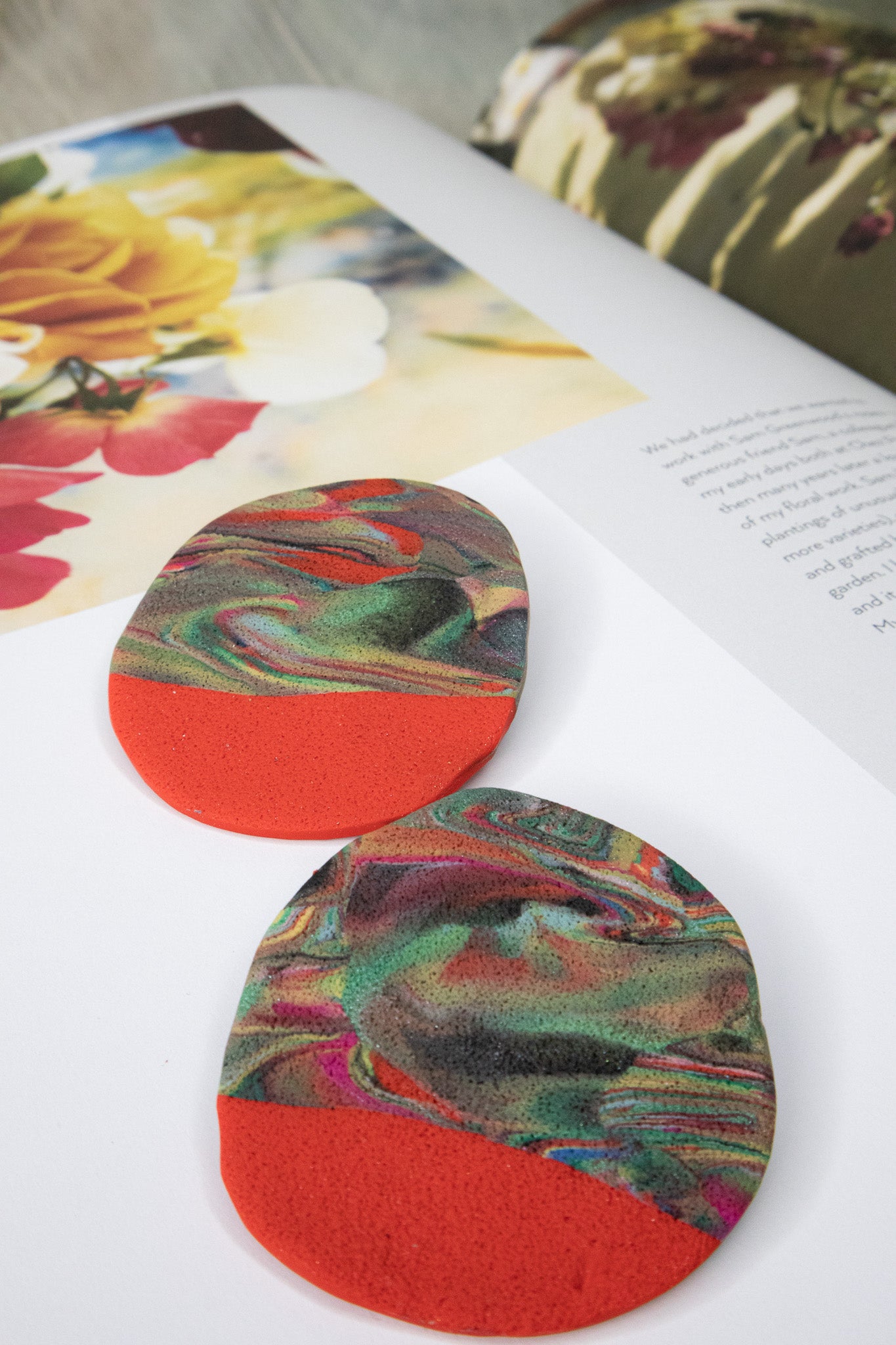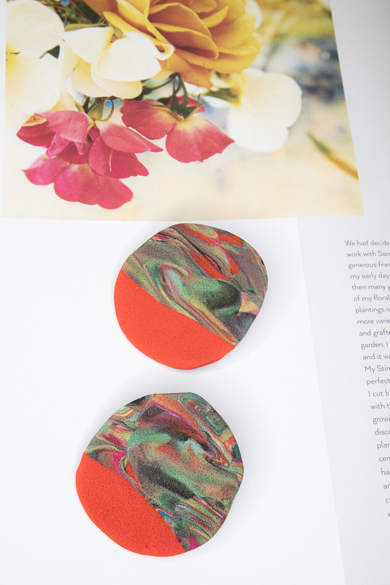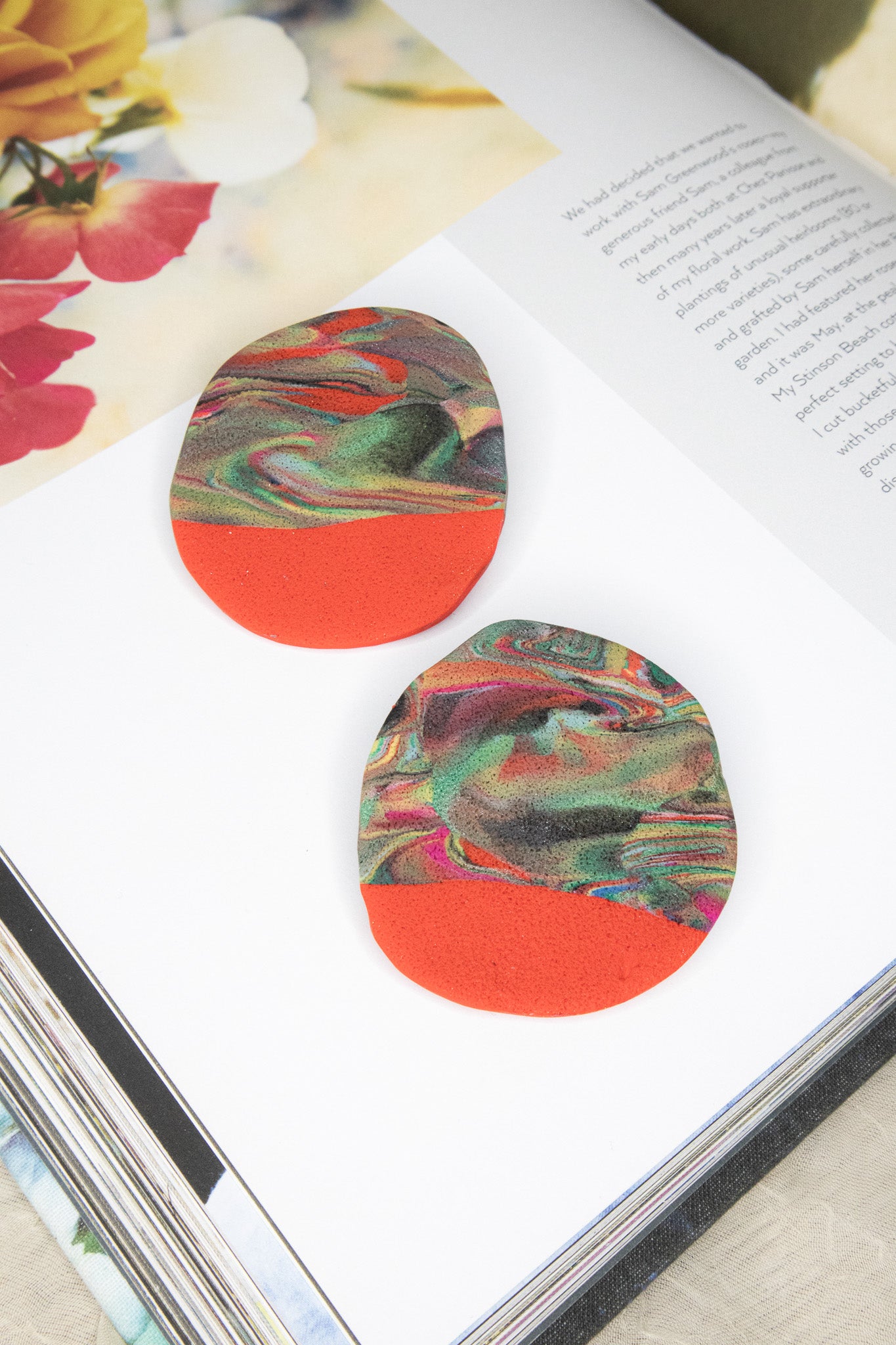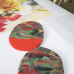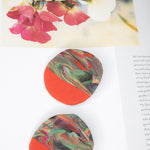 old color meets fluid movement. This waterlily blends swirling marbled tones with a pop of rich, matte red — striking but never loud, expressive but still refined. These earrings feel like creativity and confidence made wearable.